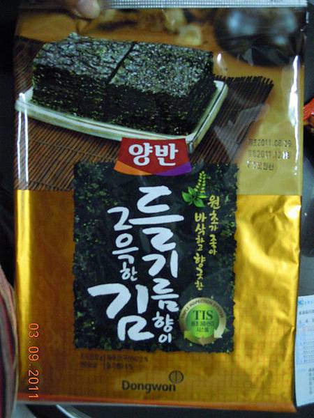 我本來想買小片包裝的海苔(方便送人),但在Home plus大賣場只看到這種大片包裝(A4大小)的海苔,後來在機場免稅店才有看到小片包裝(3g),原來那是賣給觀光客的,一小包折合台幣就要12元,我這種大片包裝(32g)的,是韓國一般家庭在買的,至少是10倍以上份量,才台幣40元不到,實在「差很大」!!