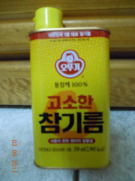 韓國飯捲跟日本壽司最大不同便是少了醋和糖,只加香油,做法更簡單。我也買了一小瓶韓國香油(350g,台幣135元),一打開就香味四溢,淋在熱飯上等涼了一點再做飯捲。