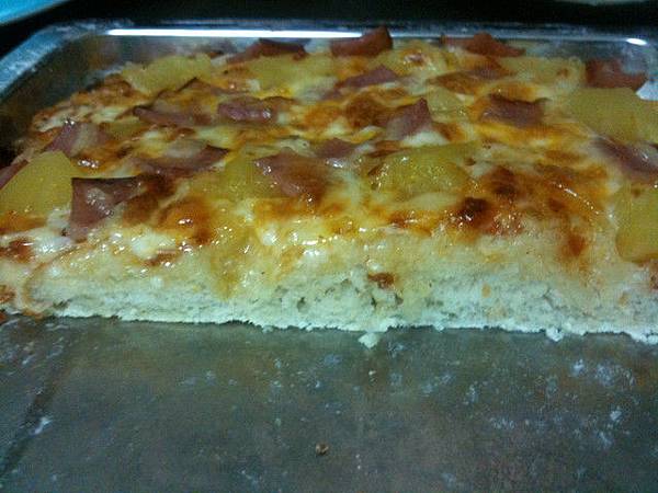 夏威夷披薩--用義大利麵醬塗底也很好吃,還有番茄碎粒,更讚~
