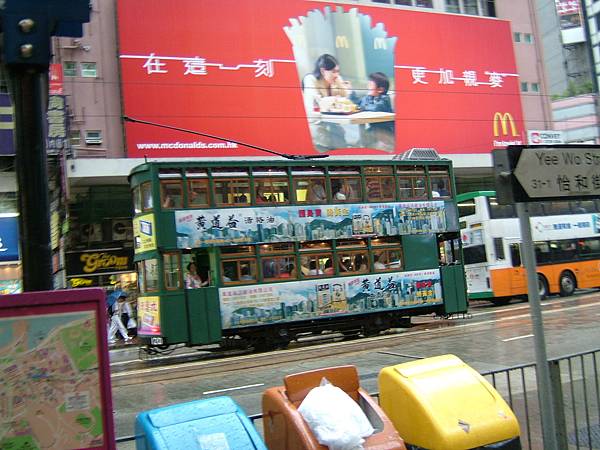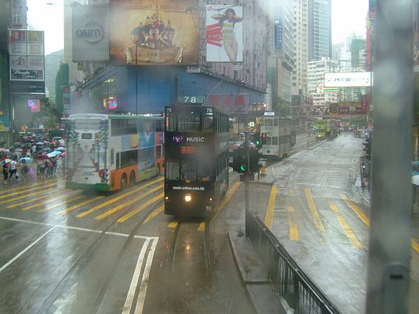 雨還是很大,雙層電車(第四種交通工具)原來是沒有空調的,又濕又悶;且和其他人車並行,時速又慢,坐在上面便沒那麼舒服了。沿路看到許多店面式的餐館,朋友說這才是她想要帶我們去吃的餐館(價位應該會比較低一點),只可惜已經吃飽了。