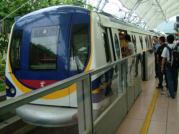到了東涌地鐵站,搭乘第二種交通工具,啟用我們的地鐵一日券,這張價值港幣50元的地鐵券,在24小時之內,被我們搭了100元以上,真是值回票價呢(不過也不是我們故意要坐這麼多次,實在是天空不作美啊)!