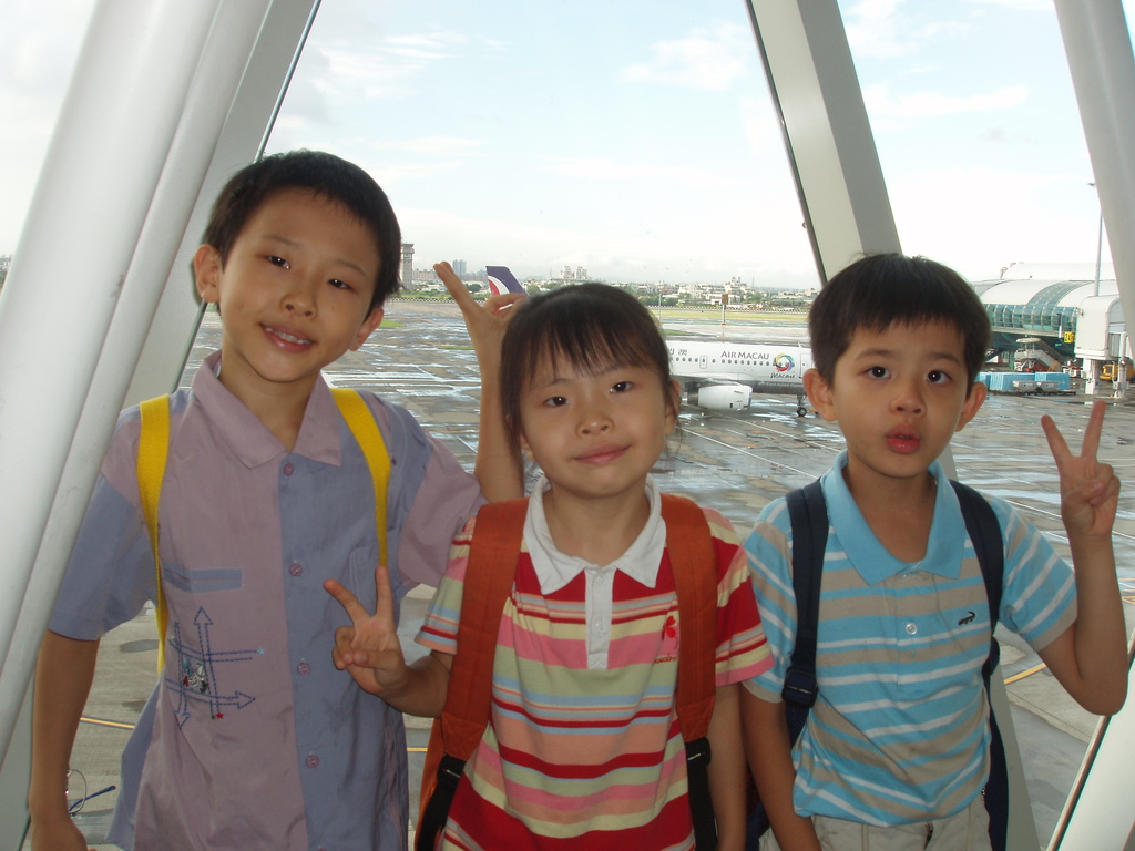 我們在下午3點多抵達小港機場華信航空check in,時間還早,孩子們也很興奮,不停的照相,真正要撘的那架飛機,被空橋遮住大半身,其實拍不清楚,於是找了一架同是華信航空的班機充數。