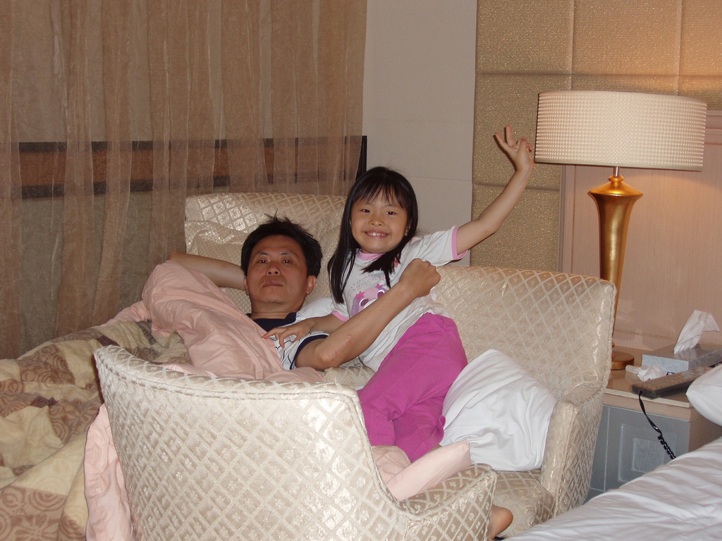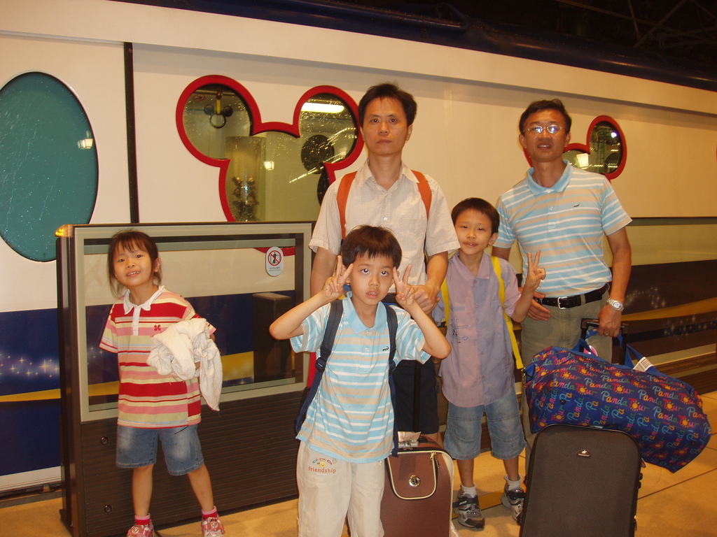 到了香港,入境是我們第一個「意外」,我們在排隊等候時,就看到前面有人被港警拒絕入境。後來聽說有一些法輪功的成員要在回歸10週年的慶祝活動示威,所以只要入境名單中有法輪功成員,甚至同名同姓的,就會被帶離,至於是被遣返或其他處置,就不得而知了。輪到我們入境時,我和彬各帶一個孩子入境關,沒想到在我這邊的小禹,不知是她的簽證還是護照資料有問題,海關人員眉頭深鎖,然後請另一個港警把我們帶到後方,也不說原因,就是請我們到後面等。這時,彬和呈鴻一家都已入境了,唯獨我們不明原因的被留置,還好他們還可以看得到我們。等待的過程中,真的很怕我們被遣返,因為他們完全不知道行程要怎麼走,我們的旅遊就泡湯了;也深深感受的港方的不友善,不管如何,也稍微說明一下要我們等的原因,要等多久,才不會讓我們心慌易亂的。大約20分鐘之後,我們才回到原處辦理入境,順利跟他們會合。