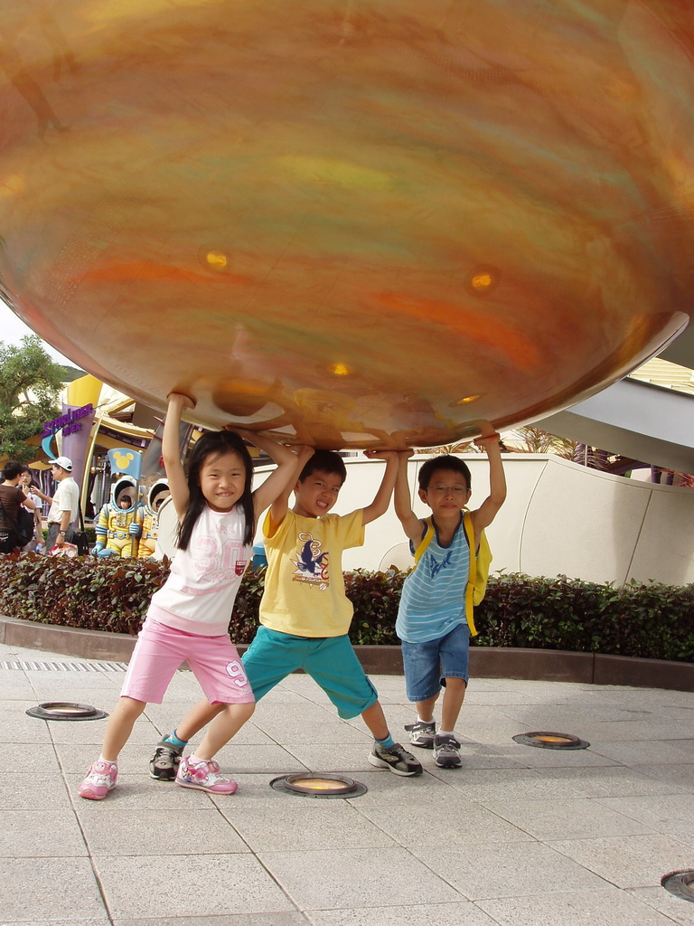 玩迪士尼的過程不再一一贅言,我的感覺是,迪士尼的秀真的很精采,像「獅子王慶典」那齣劇,特效超棒,整個劇場呈圓形,四面八方都是看台,正中央只是一個平面走道,很難想像舞台就在那裡,表演時不僅會突出活動舞台,還有演員是從地底下冒出來的;還有「米奇金獎音樂劇」,所有迪士尼經典動畫的人物全部出動;「幸會史迪仔」,一隻會跟現場來賓作及時對話的外星怪物,好有趣!「米奇幻想曲」是3D電影院,劇情和特效,都是台灣遊樂園無法比擬的!