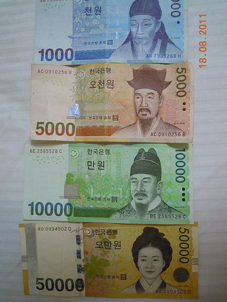 沒想到1美元只多了13W,省個14300W,還多花了計程車資3400W,省不到300元,真是人算不如天算,平均匯率1NT=36.48W。第3天晚上在明洞還有1070W,聽說白天還有1080W!只能說自己運氣不好。不過比起在台銀用台幣換1NT=34.48W台幣3萬元就多換6萬W,就快1天的房租了。