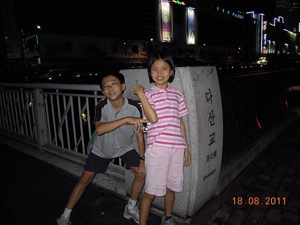 而清溪川兩旁的店家,開門的沒幾家,我本以為都打烊了。後來才知道,東大門的店家大多數是晚上10點以後才開始營業,我們吃完才9點多,一些店家才陸續準備營業而已。因為搞不清楚狀況,加上兩個男人根本不想逛,我們只能打道回府,就去逛樓下的Home plus express更合我意!