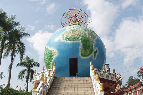 這間寺廟看來像是一貫道的道場,我們只是對廟前的那顆大地球感到新奇。