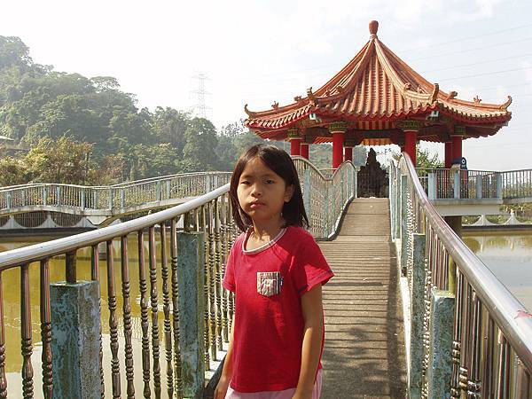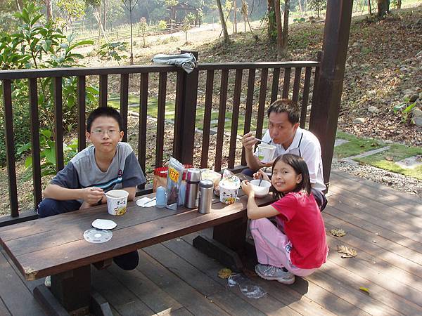 我們找了個的涼亭席地而坐開始我們的午餐,可是涼亭頂卻是露空的,還好還有微薄的樹蔭,在冬日正午不會太熱。