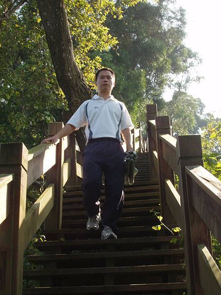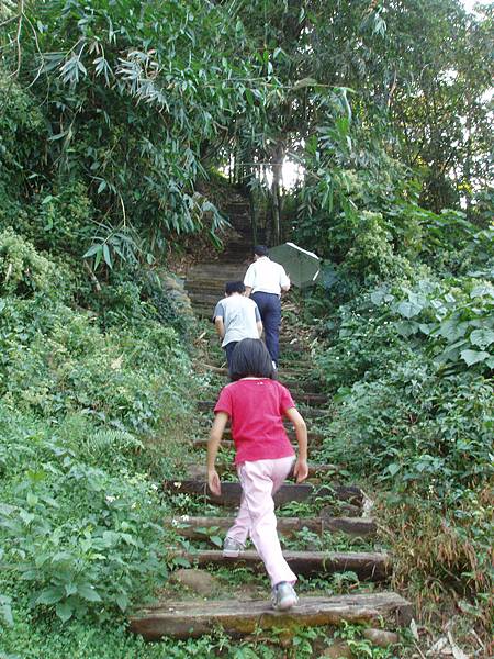 雖然這段路較快較短,可是出發沒多久就看到迎面而來幾乎45度角的木棧階梯。