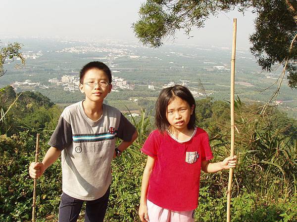 孩子們一路走在前頭,在稜線的起始點時已眺望雲嘉美景,以為應該很快就會登頂,我在後面走得氣喘吁吁不停問,「看到三角點了沒?」,實在懷疑網路上所謂「十五分鐘」的登頂資訊到底正不正確呢?
