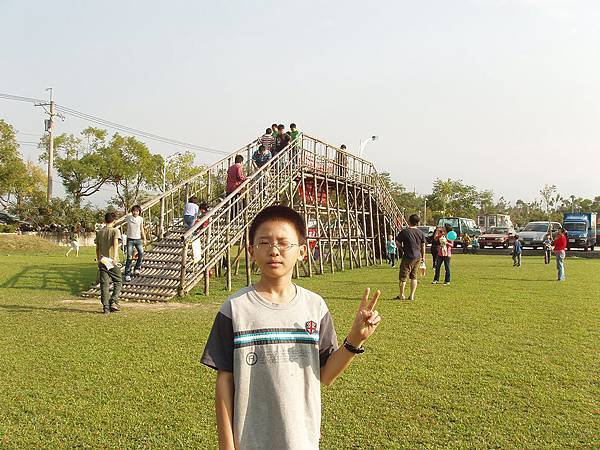 下山後想說時間還早,就去主會場的綠色隧道瞧瞧。沒想到停車位一位難求,繞了一大圈還是回到剛轉彎進來的地方停車,也完全感覺不到「綠色隧道」的詩情畫意,全是攤販雲集了。來此,不免吃吃喝喝,說真的,這種攤位東西一定比較貴,也不見得好吃,不過因為中午只吃泡麵,加上又爬了小山體力也消耗差不多了,小朋友已經肚子餓了,所以買了蚵仔煎(50元)、大腸麵線(40元)、花枝丸、豆乳雞翅(各10元)和1伓1000C.C鮮奶茶(35元)。