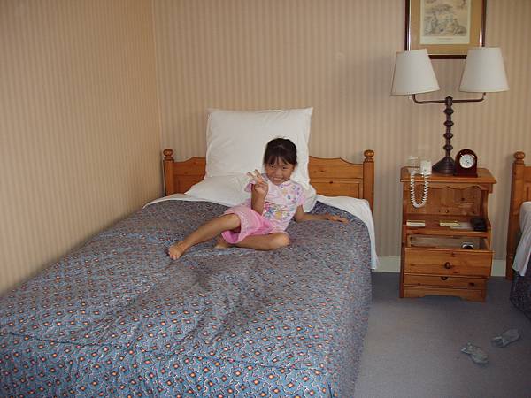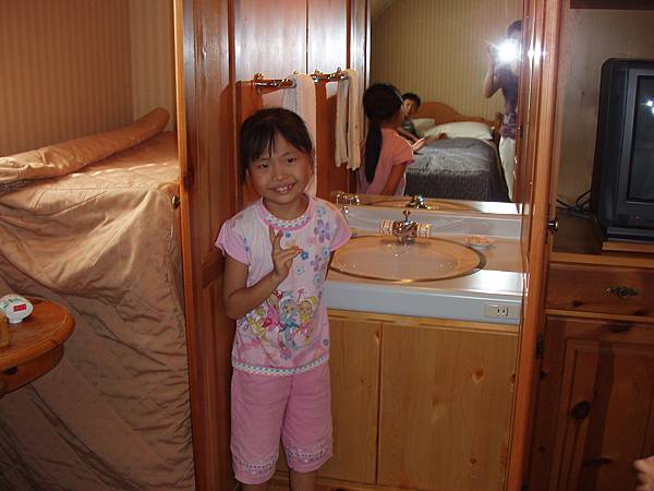 樓上則有兩個房間,各有2張單人床;如果是不熟的兩家人,確實比較不自在。我們家2個小孩和朋友的小孩都不佔床,所以我們和朋友一家人理所當然就被分配住同一棟,非常適合。