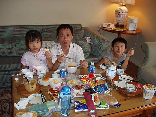 晚餐是自理餐,我們早就「有備而來」,帶了不少泡麵,加上導遊送的蘋果,兩家人談天說地,別有一番滋味。