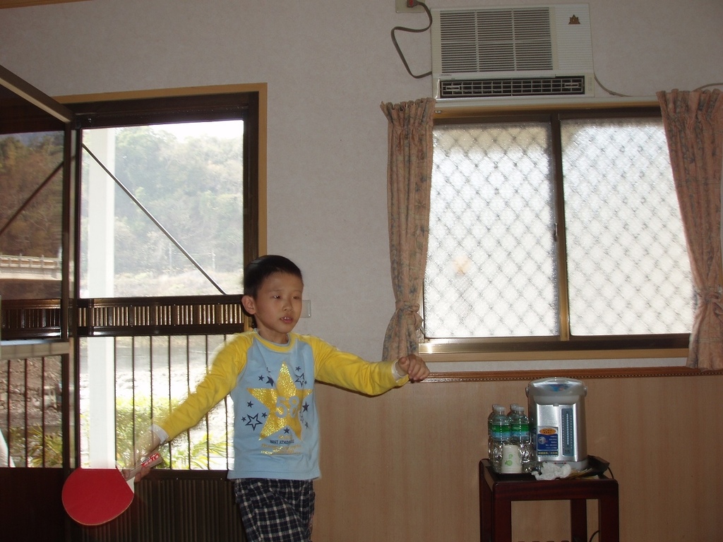 因為其他的4人房空間狹小,所以選了這間直接面寶來溪的6人房,有點奢侈,房間頗大,大到兒子可以在房間內打桌球XD