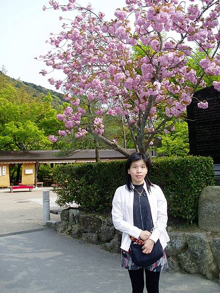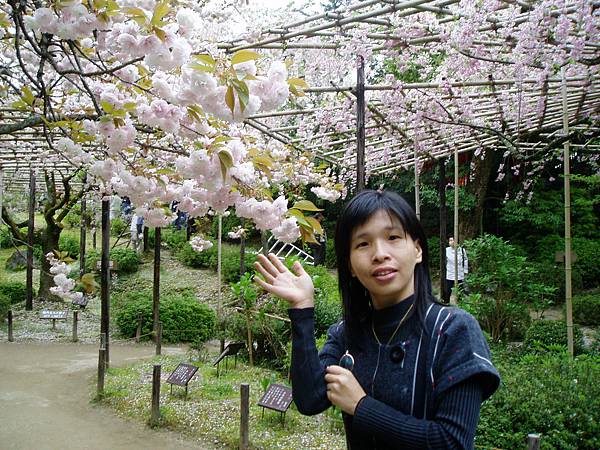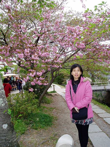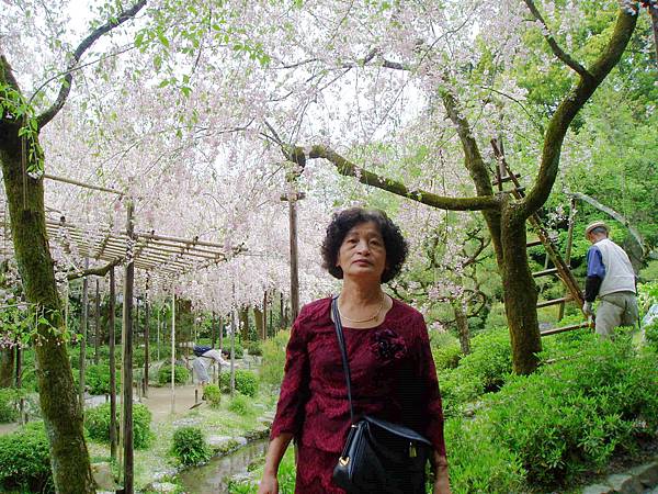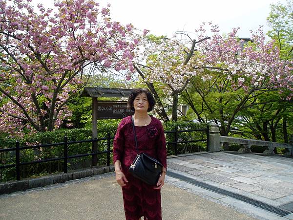 還好外圍還有幾株盛開的櫻花,如旅行社的行程說明:一年僅此一團可以同時遊覽京都櫻花與立山雪牆,雖然櫻花有點稀疏,但聊勝於無了。