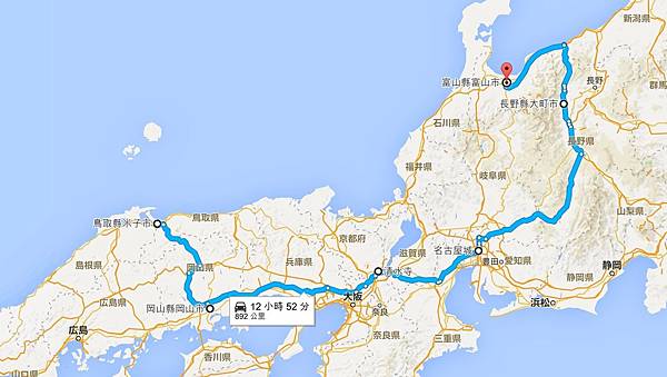 12:25台北/16:00米子空港→米子自動車道→岡山