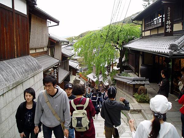 接著專車前往清水舞台及姻緣著名的【清水寺】,為京都最古老的寺院,建於公元798年,占地面積13萬平方米,相傳由唐僧在日的第一個弟子慈恩大師創建。現存清水寺為1633年重修。不論春季的櫻花,秋季的楓景都十分誘人,大殿前為懸空的「清水舞台」,由139根高數十米的大圓木支撐綜橫交錯取得支撐力,寺院建築氣勢宏偉,結構巧妙,未用一根釘子。大殿所供俸面十一面千手觀音平常無法見到,33年才公開一次。地主神社位於清水寺正殿北側,神社內良緣之神極受年輕人的喜歡,在這裡終日可見祈求良緣的年輕女性虔誠參拜,熱鬧非凡。據說舉凡從舞台及姻緣石走過一遭者,除可健康長壽外更可締結良緣。二、三年坂步道兩旁皆京味小舖,在此自由購物您可深刻體會京都古風鎮。