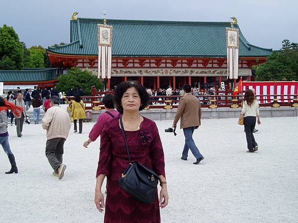 前往【平安神宮】參觀,此為日本明治28年為紀念平安京遷都1100年,模仿朝陽亭應天門所建造而成,內奉平安建都初代、神武天皇、末代孝明天皇之神位;而建築美,更引用四方風水,青龍白虎、玄武朱雀而定,青白朱漆之迴廊宮殿建築,為日本神宮總廟之代表。特別安排進入宮廷秘苑「神苑」參觀,在3萬平方公尺的日式池泉回遊式庭園中,春櫻、夏杜鵑、秋楓、冬雪四季明媚,一踏進神苑入口,映入眼簾滿滿八重枝垂櫻搭配小橋流水,清池古道,欣賞垂柳櫻隨風搖曳,好不動人。除此外還有染井吉野・彼岸櫻・山櫻・里櫻・寒緋櫻・鬱金櫻等等約20種類的櫻花樹散佈苑內。