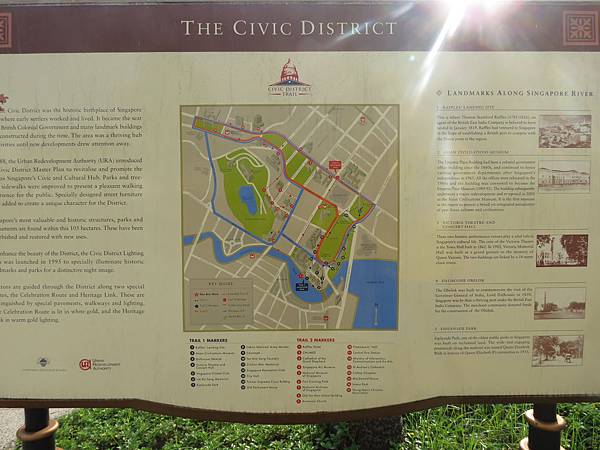 萊佛士爵士登陸遺址(Raffles’Landing Site)-湯瑪士·史丹福·萊佛士爵士是新加坡的開國元勳,在亞洲文明博物館旁鄰近新加坡河畔建了一座他的雕像以玆紀念。他在1819年1月28日首次登陸新加坡,以他的才智和遠見改變了新加坡的命運,由一個沒沒無聞的小漁村成為一個大海港和現代都市。