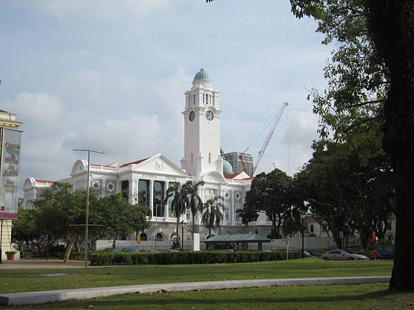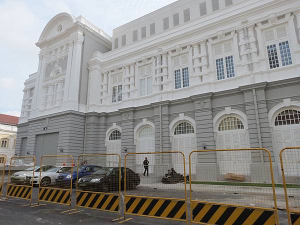 整修中的高等法院(Formeer Supreme Court),照片右側整個用黑網包起來的則是市政廳(City Hall),兩者都有著相同的文藝復興時代的科林斯列柱造型建築風格,可惜我們都無緣親近。高等法院的青銅色圓頂,更能代表古典主義精神,是英國殖民時期最精緻的建築,於1939年完工,是新加坡最後一座殖民建築。