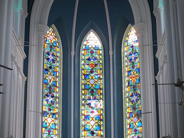 還有高挑的天花板和彩色玻璃窗 ,真的很高~