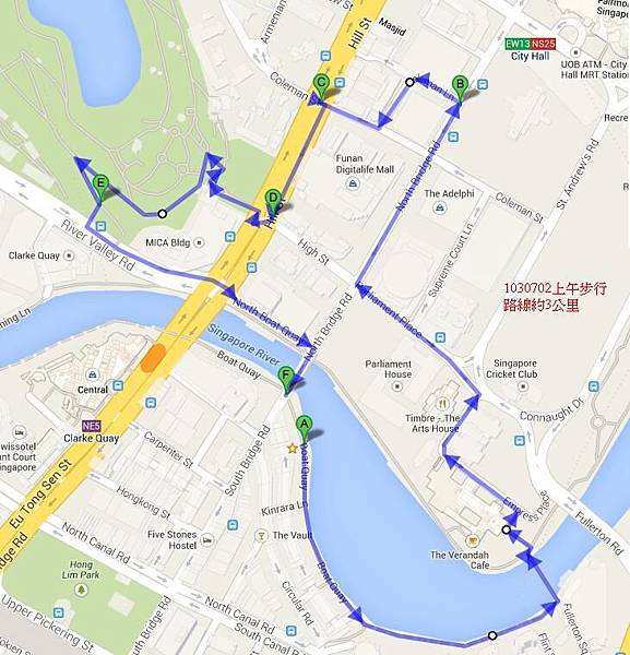 才一個上午我們就走了這麼大一圈,Google地圖計算約3公里,加上各景點間停留參觀的路線,難怪每天都覺得好累喔!