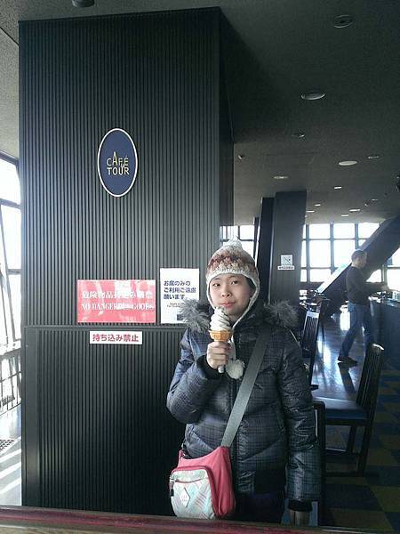 為了有個位置坐,買一支冰淇淋(380日圓)全家一起吃,優閒地欣賞窗外美景,享受自由行的隨興!