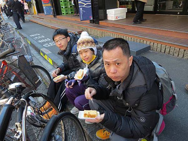 我和女兒乾脆到轉角的鳥藤本店買外帶的無骨烤雞腿,邊吃邊逛還自在些。味道還算不錯,可惜不是現烤的,雖然有再微波,不過冬天一下子就又變冰了~每支302日圓。