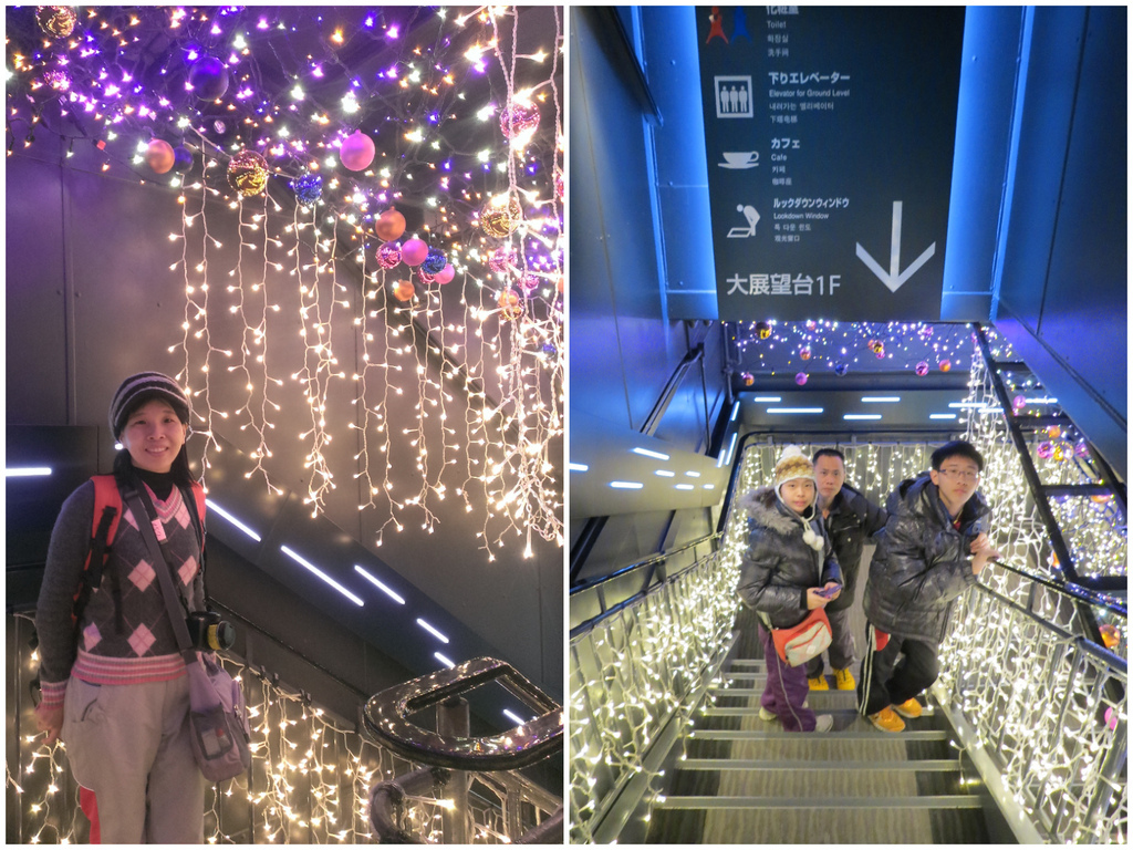 大展望台有2層樓,往1樓的樓梯佈置得星光熠熠,好美啊!