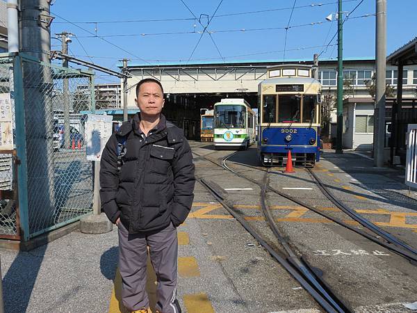 看到一列車廂正駛進車庫裡。這一路也看到各式各樣的電車,很有趣哩~