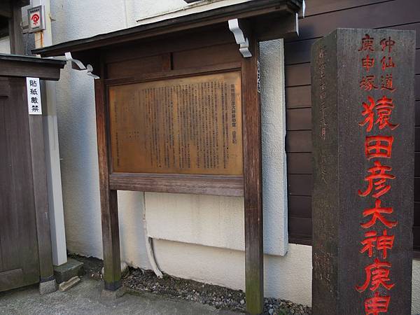 門口的看板記載了猿田彥大社庚申堂的由來,一樣看不懂XDD所以就不敢進去亂參觀