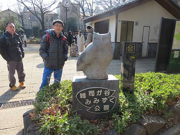 在鬼子母堂前有一座小小的「雑司ヶ谷みみずく公園」,所謂貓頭鷹公園,只有這隻貓頭鷹雕像而已。