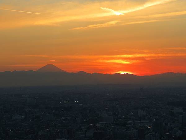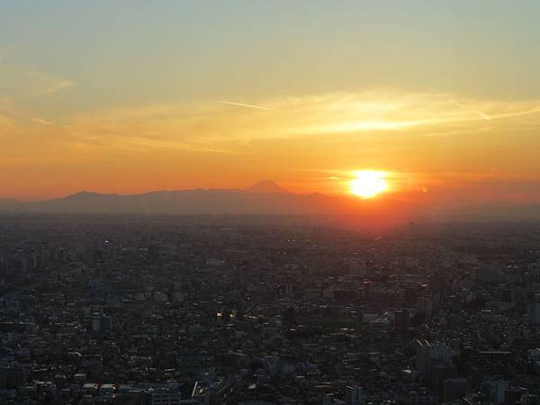 不過還是可以看到富士山喔!夕陽西下的富士山也很美~跟在東京鐵塔看到的日間景觀又不一樣!
