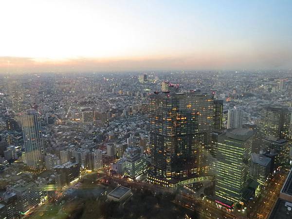 東京都廳瞭望台有48層樓高,展望角度約350度,北瞭望台景觀有一部分被新宿西口的大樓擋住了,還有東京鐵塔那個方位的景觀被餐廳佔去了,還高高的板子圍了起來,我們從縫裡瞄到了東京鐵塔的橘色點燈。
