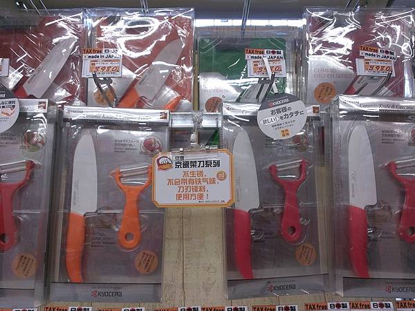 這裡超好買,又可以退稅,像下面這組日本【KYOCERA】京瓷陶瓷刀,台灣售價至少2500元,這裡換算台幣才1100元,真的省很多!