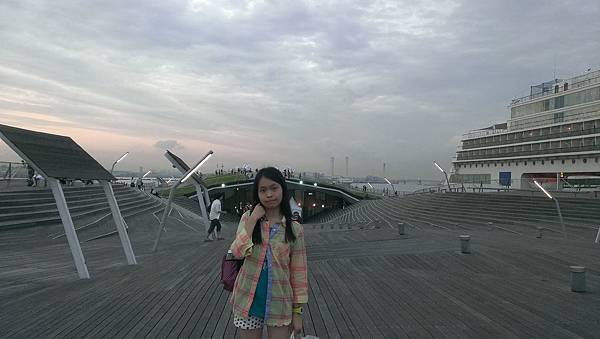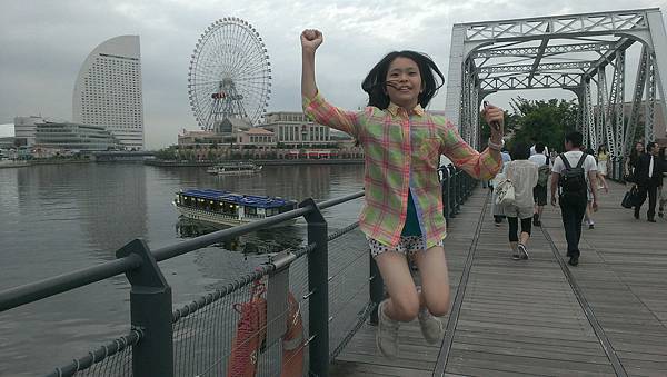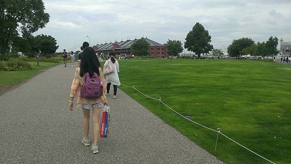 往橫濱港博物館的方向走,這個背影真的不像中年大嬸吧!?