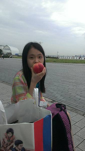 反而在店門最前沿坐下來,吃起我們從池袋帶來的水蜜桃~