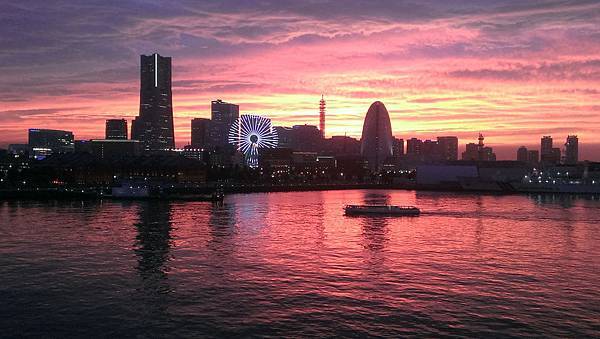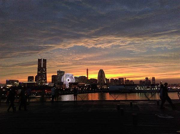 雲霞顏色千變萬化,當摩天輪的燈光亮起,把橫濱港點綴得更漂亮~