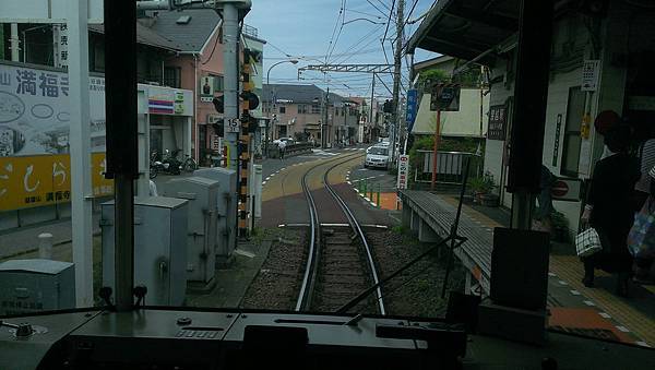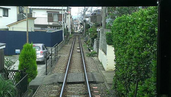 江之電從江之島站到腰越站之間是和汽車共用道路