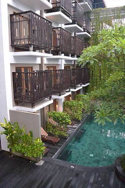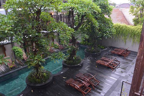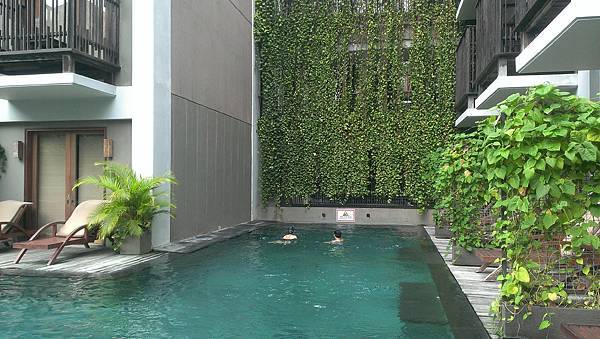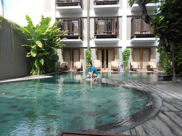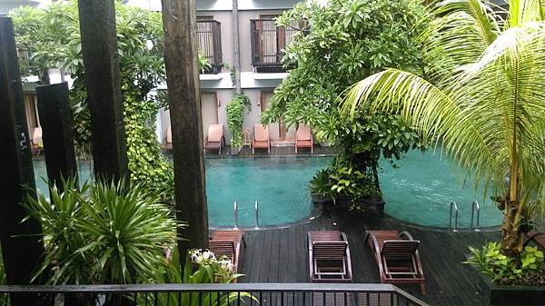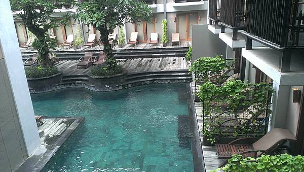 飯店前面的游泳池,一樓的房型直通泳池,比較貴,而且只有雙人房。