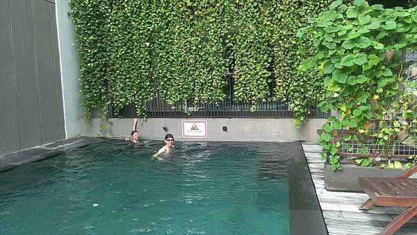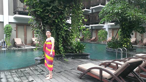 從沙灘回飯店後已經10點多了,距離跟司機約11點還有半小時。前一天因為下大雨太冷了,所以沒下去游泳;想說如果再不下水,就可惜了這美麗的游泳池,就算玩個半小時也好吧!