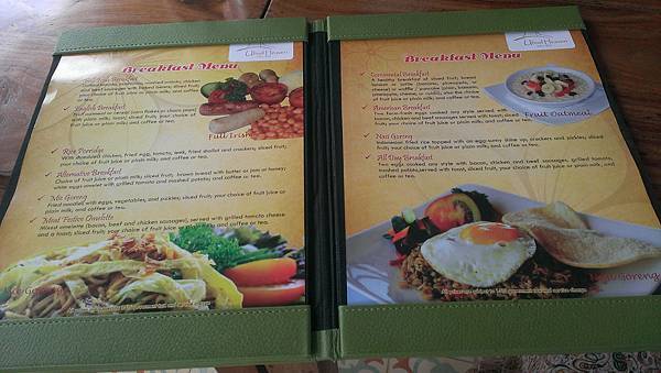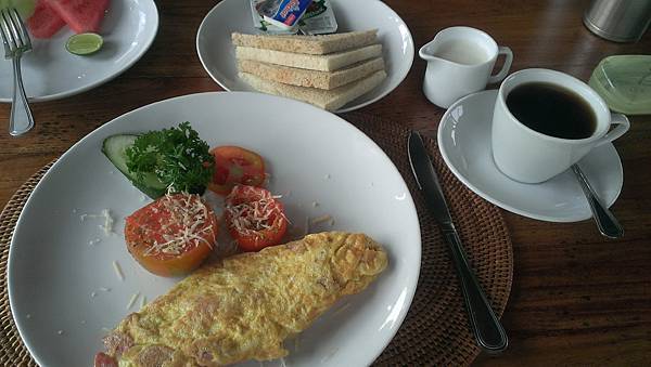 早餐是現點現做的,有英式、美式、和印尼等不同樣式,有些樣式又提供了不同的主菜選擇,每次點餐都花好久時間XDD。