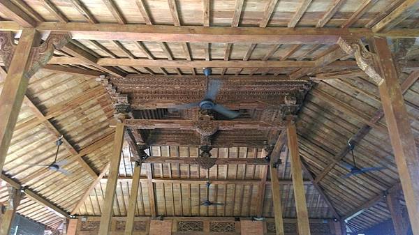 整棟大廳屋頂和樑柱幾乎都是原木建造