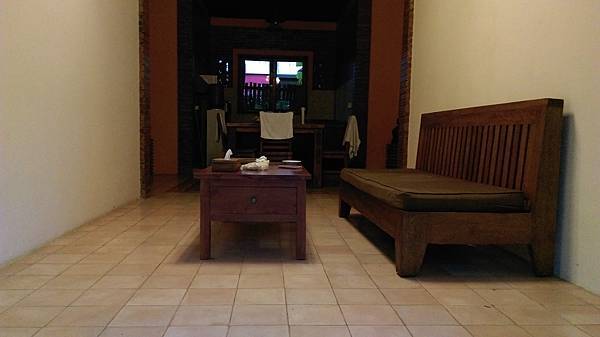 客廳和廚房在室內,不過還是沒大門,不懂他們為什麼不多蓋一個門呢?不過跟庭園房型客廳是三面沒牆壁比起來,泳池房型只有一面沒牆壁,蚊蟲少了很多!