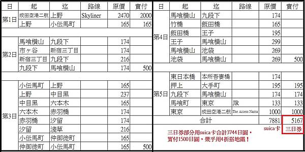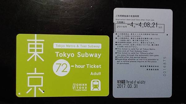 既然留在東京市區,就不能不買超值的東京地鐵三日券,而且自3月26日起張張優惠券改為以時計,可以使用足足72小時,所以第4天一早我們還刻意趕在有效時間截止前再多搭了一趟地鐵。回來精算一下,同樣行程我如果用Suica卡,得花3744日圓,幾乎是用4折價格搭地鐵喔!只要1500日圓就幾乎讓我們跑遍了東京賞櫻名所,實在是太划算啦!