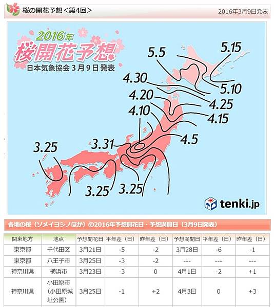 出發前日本氣象協會已經修正東京都的櫻花滿開日是3月31日。