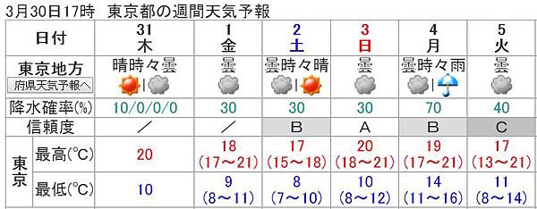 Weathermap預測東京都的櫻花滿開日也是3月31日!