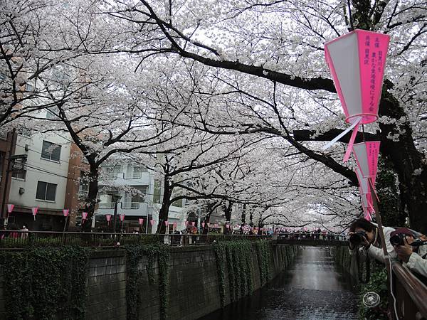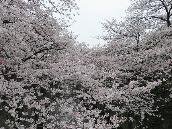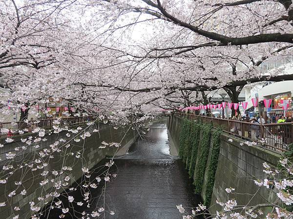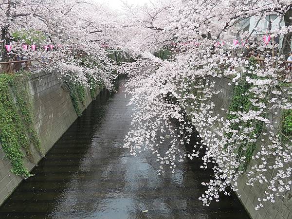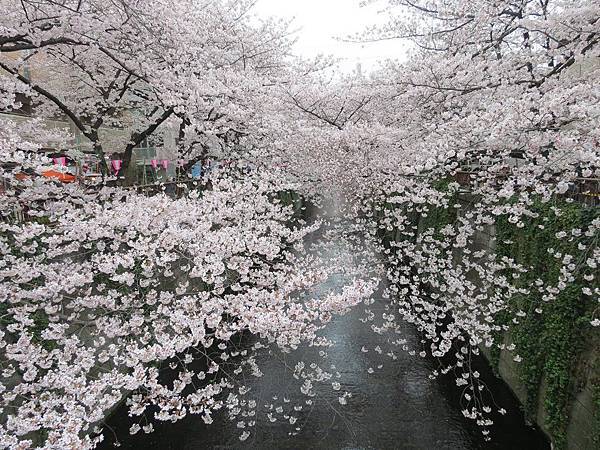 也有這種低垂,幾乎要把目黑川整個覆蓋住的櫻花