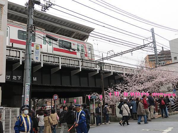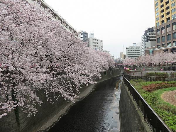 中目黑站的左右兩側都是滿開的櫻花,綿延數公里,這是鐵道右邊的景象