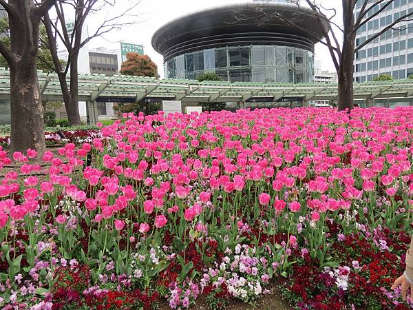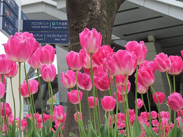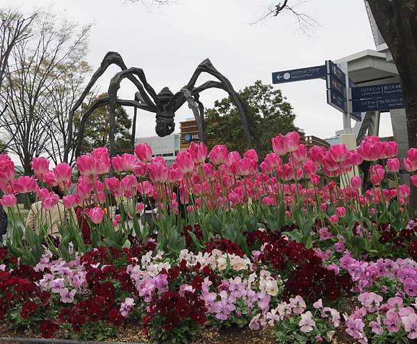 餐後我們走出六本木之丘地下樓層,往毛利庭園的方向走,走到大蜘蛛附近,立刻就被一片美麗的鬱金香花海給吸引了!